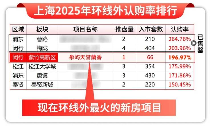 项目首开即以 约197%的认购率强势触发积分,高居今年上海环线外新房认购榜单第三。