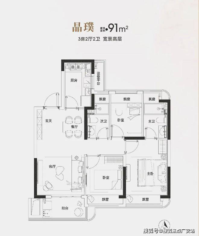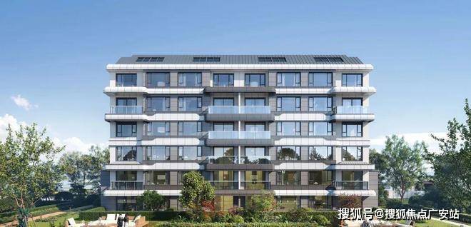 晶幕高层楼栋,采用公建化立面,极简现代风格,阔景阳台、大面积玻璃,端庄大气。