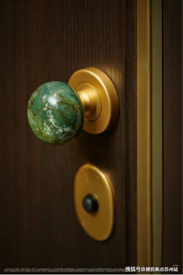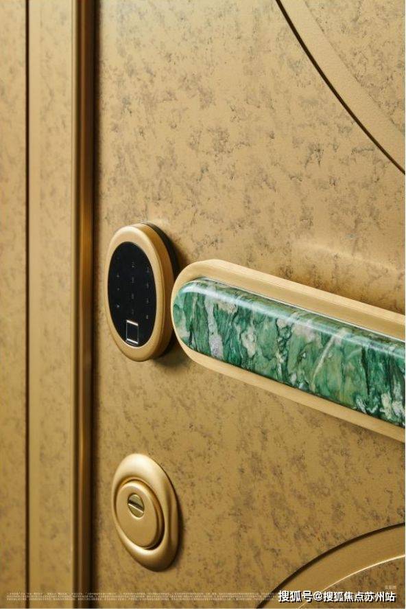 大门把手是天然翡翠绿大理石材质,每一块都不可复制。