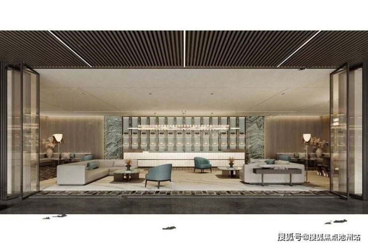 穿堂而入,近400㎡的镜面水景一览无余,借鉴了网师园“月到风来亭”的倒影手法,以极简的“一勺代水”设计传递出宁静的美学.约340㎡的下沉庭院内,静水流瀑通过叠石与奢石卡座的材质碰撞,营造了“静潭观鱼”的动人意境.此外,社区内规划有约1500㎡的全龄共享空间、约1400㎡的水岸花园、400㎡的阳光大草坪和户外运动场所等多重场景,极大丰富了业主的日常生活.