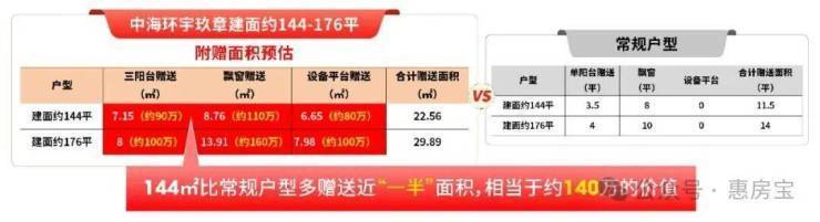 而该144平户型,不仅配备三阳台,飘窗数量更充足,还独树一帜地规划了户内设备平台,多重赠送叠加后,总赠送面积高达约22.5平,比常规户型整整多送一半!