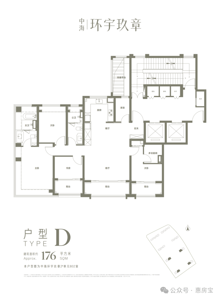 全系3米层高+多阳台+高实得率,建面约123-176㎡3-4房