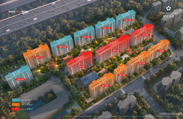 户型面积:建筑面积约91m2/112㎡/128㎡(洋房)