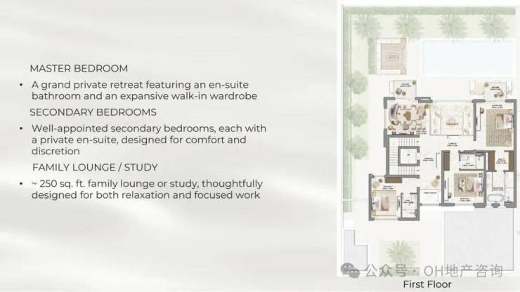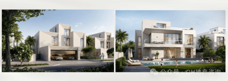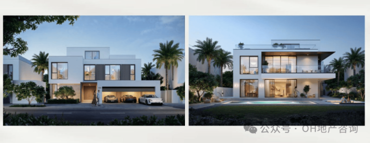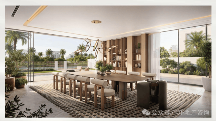 整体容积率仅0.82,意味着更大的地块尺度与更低的居住密度,而当前约2,170迪拉姆/平方英尺的定价,在高端独栋市场中具备明显性价比优势。
