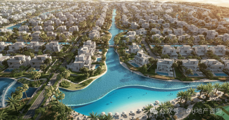 TheOasisByEmaar整个社区占地960万平方米,但是开发商Emaar却以极致“奢侈”的规划,不做公寓,只做纯独栋别墅。大面积水系、湖泊、绿地,和顶级私密居住,明确对标:“下一代EmiratesHills”,这不是一个短期推售项目,而是Emaar为这是为未来10–20年豪宅时代提前布局的旗舰资产池。