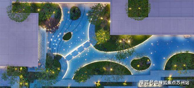 而大华星曜不仅打造了具有曲线美感的树池,还在水景底部铺了数百片蓝钻瓷片,全角度弧形定制,水刀切割,用金属线条勾勒出水波的形状。