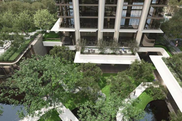 社区方面,项目打造上海罕见的“全息生境旗舰社区”,通过坡地、高差与架空策略,构建出可呼吸、可参与的立体自然体系。