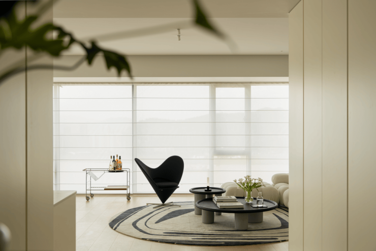 全开放式设计,岛形沙发打破边界,让交流随光影自由发生.午后的光线从侧面洒落,家具被赋予立体的光影层次.