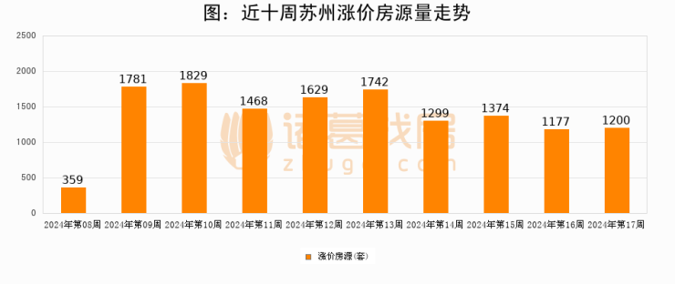 三、本周涨价房源1200套,较上周上涨2%