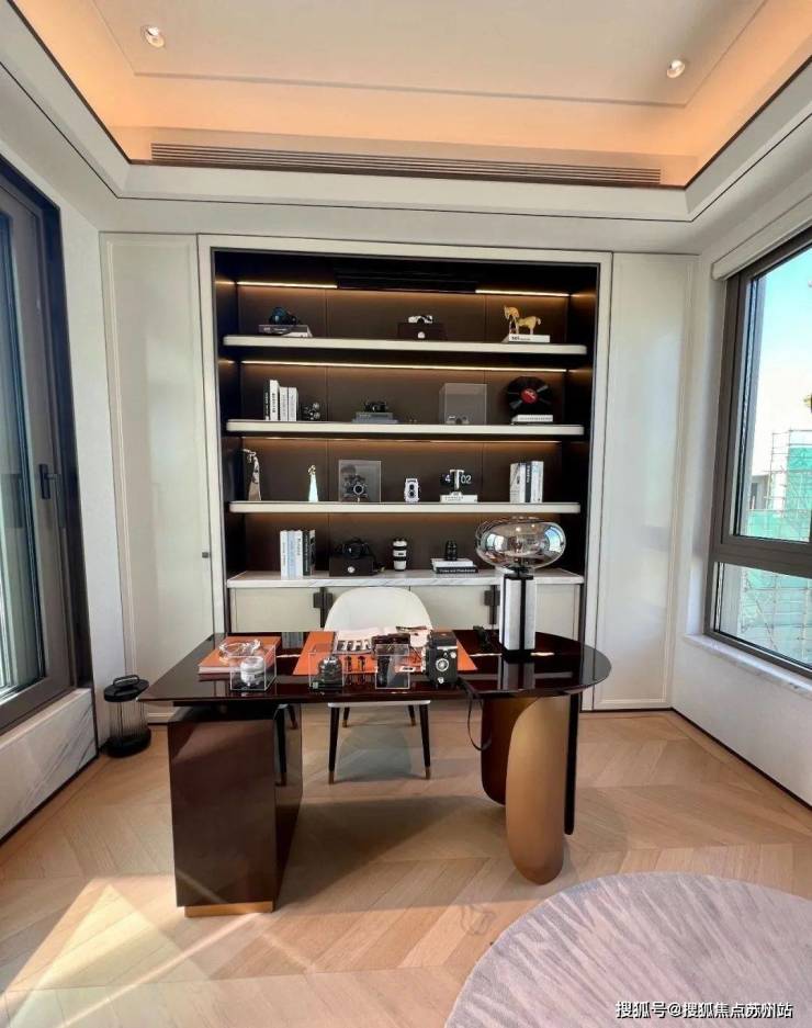 一层是会客区,约10.7米的超大面宽,阳光、空气可以“肆意”穿过,室内通透明亮。