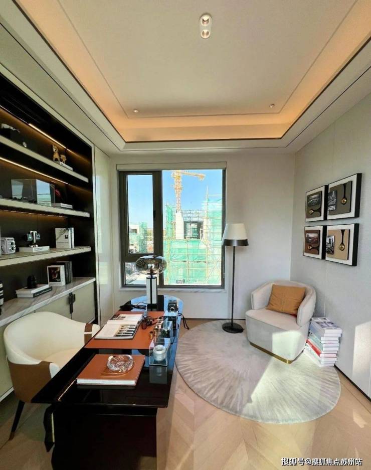 三层是一整层的主人私享区,由书房、衣帽间、主卧组成,更有建面约13.5平米露台,保证了主人的私密空间。