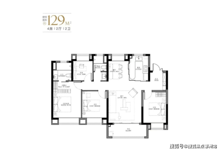 1.主力户型图详解(103-129㎡精装3-4房,全龄改善优选)
