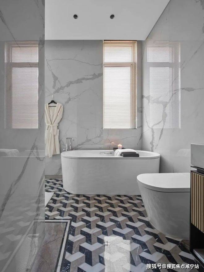 5、卫生同:石膏板吊顶,刷涂料,地面铺石材或诺贝尔品牌地砖,墙身贴石材