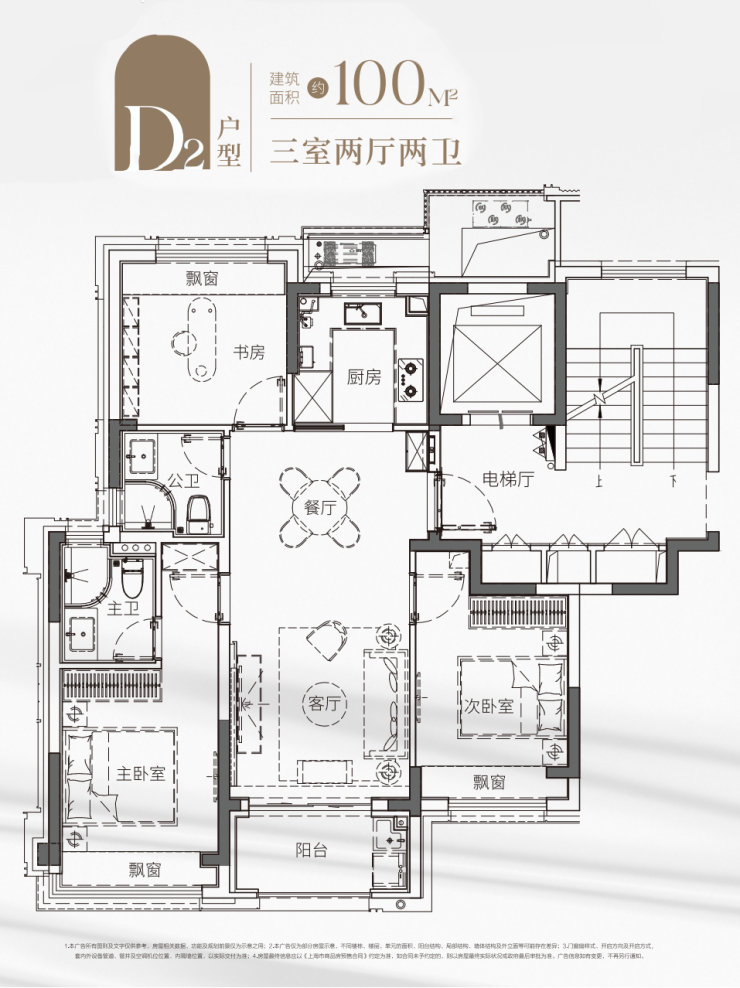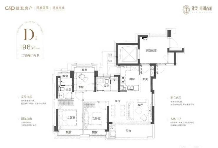 建面约96㎡3房2厅2卫