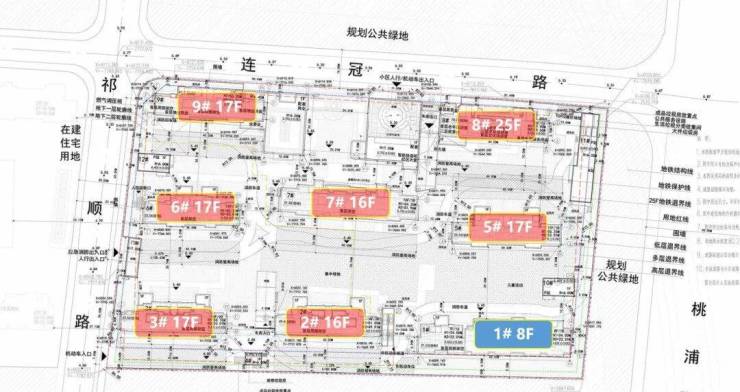 根据设计方案,项目拟建4幢总高17楼、2幢总高16楼、1幢总高25楼的住宅产品,另有1幢8楼保障房。