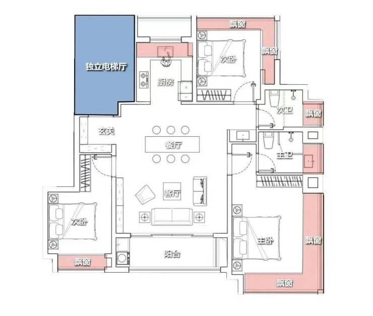 项目还有 11套大两房格局产品,采用一梯两户设计;