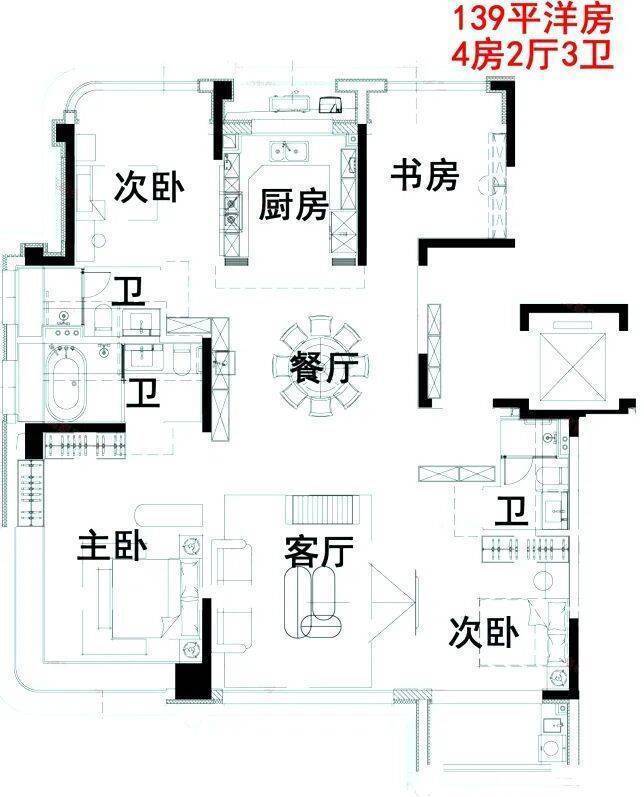 约100-139㎡的洋房户型图