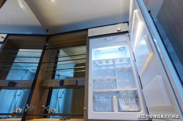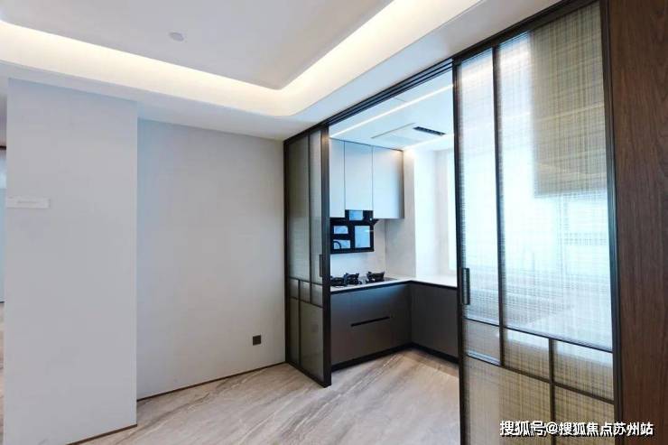 还有个细节之处是在于飘窗,做了一定的弧形内凹,亲身体验确实不像直线那样硌着腿。另一个样板间则是170㎡的,这个户型是电梯双开门的类一梯一户。开门以后映入眼帘的是陶瓷的编织纹玄关背景墙。大户型的收纳空间多了不少,玄关处一个储藏间,厨房旁边还有一个家政间,预留了下水、地漏和插座,可以放置洗衣机烘干机。170㎡的客厅电视机背景墙比107㎡更深,但不变的是大理石花纹同样做到了衔接和统一方向,这对工人的要求就比较高了。厨房的橱柜板材和107㎡颜色不同,冰箱位置就预留在餐厅一侧。其余配置没什么差别。