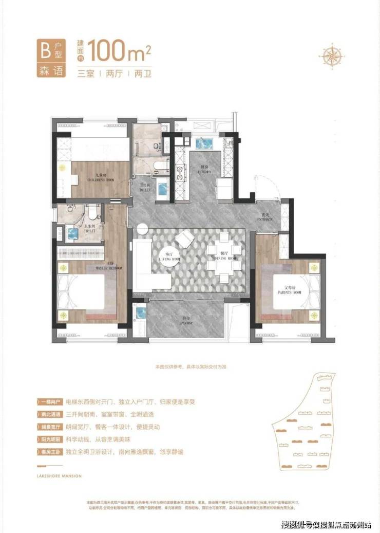 景观设计:以原生水系为基础构建 “一轴三带五园” 体系,通过约 1.8 公里慢行步道串联起亲子活动区、湿地花园、运动广场等全龄功能空间。约 80% 户型设计为南向直面水景或中央景观带。