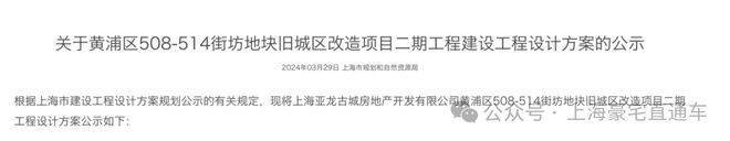 2024年3月底左右,黄浦区508-514街坊地块旧城区改造项目二期设计方案公示。该地块也就是【新湖融创亚龙项目二期】,2022年项目一期设计方案公示。