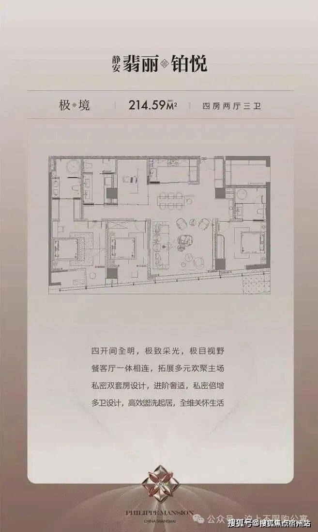 - 极境214㎡:4房双套房,四开间全明采光,餐客厅一体化拓展社交主场。