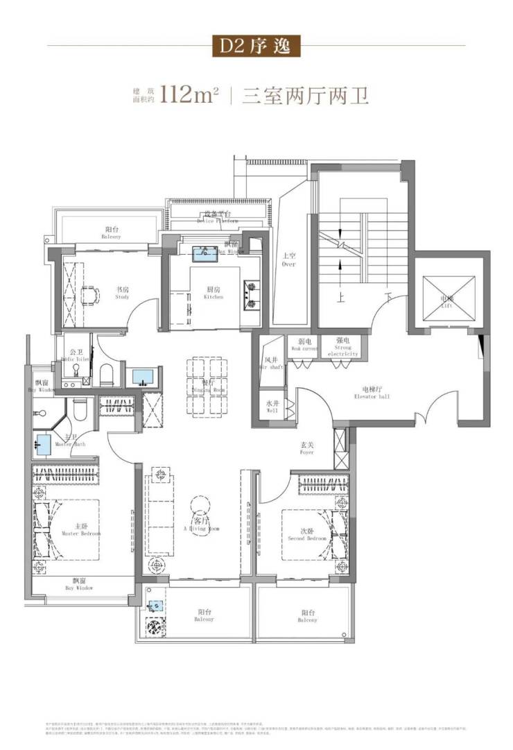 除了建面约100㎡3房外,这个建面约114㎡产品也是主打: