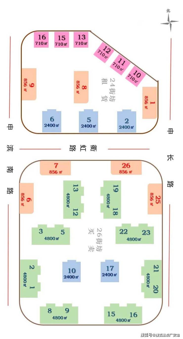 项目分为南区和北区,北区为一期,南区为二期.二期南区共有14栋,单栋面积约为856~4800㎡即将交付,以出售为主;一期北区共有12栋,单栋面积710~2400㎡已经交付使用,以出租为主.