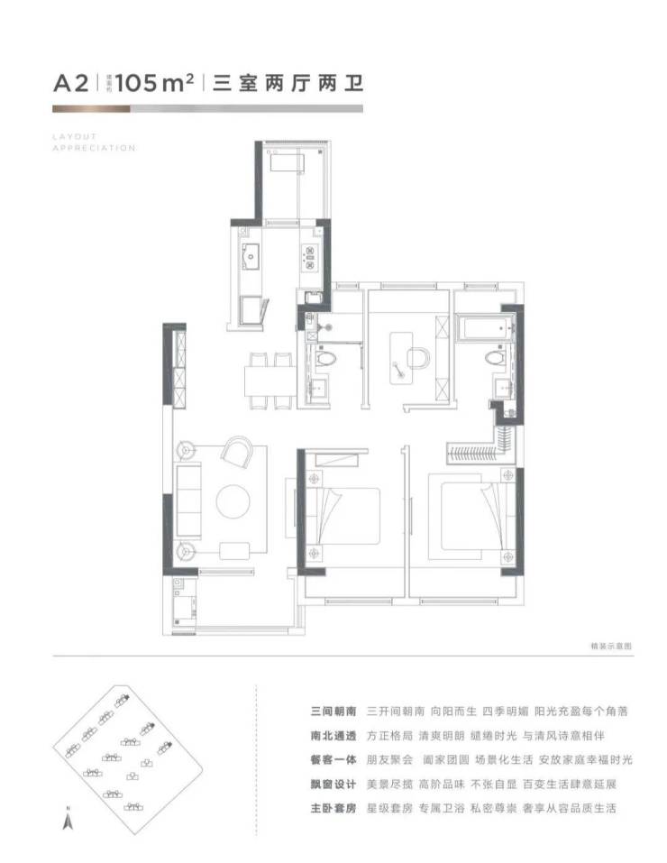 雅乐云庭户型选择多样,从约105㎡的温馨三房,到约220㎡的阔绰大平层,能满足不同家庭的成长需求。每一户都方正通透,精心考量动静分区,为您预留了充足的改造和想象空间,让家真正贴合您的生活习惯。