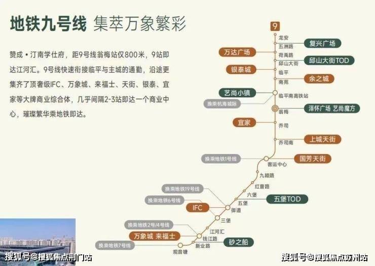 9号线快速连接临平与主城的通勤,沿途更是集齐了顶级IFC,万象城,来福士,天街,银泰,宜家等大牌商业综合体,几乎2-3站即达一个商业中心,璀璨繁华乘地铁即可到达。