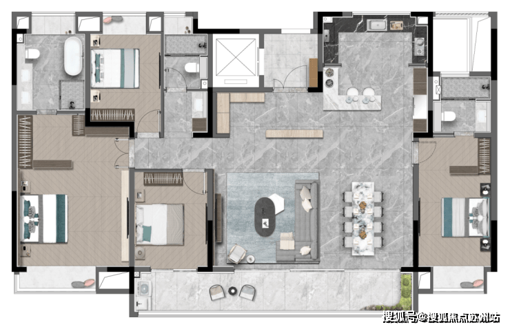 奢适双套房设计, 约30㎡宽套房主卧,配备衣帽间、双台盆、浴缸、淋浴,更添独立性和私密性,大大提升生活幸福感。