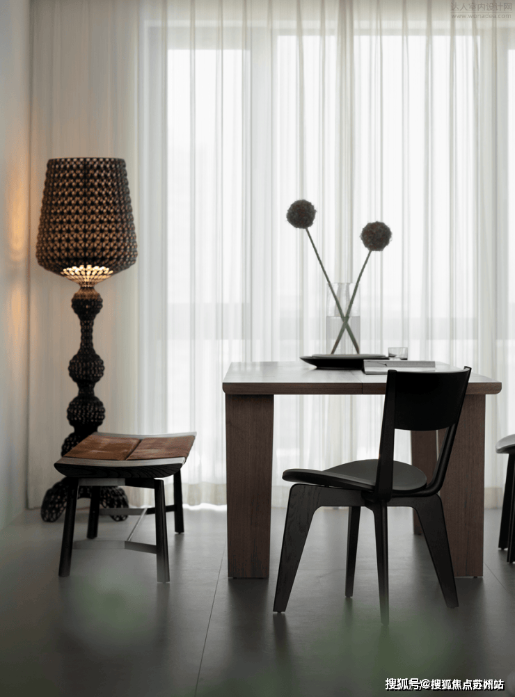 餐桌不大,足以安放四季三餐与烟火回忆,深木色的家具极易唤起居住者的归属感,工作、喧嚣、娱乐......一切都在餐桌闲时面前静了下来。