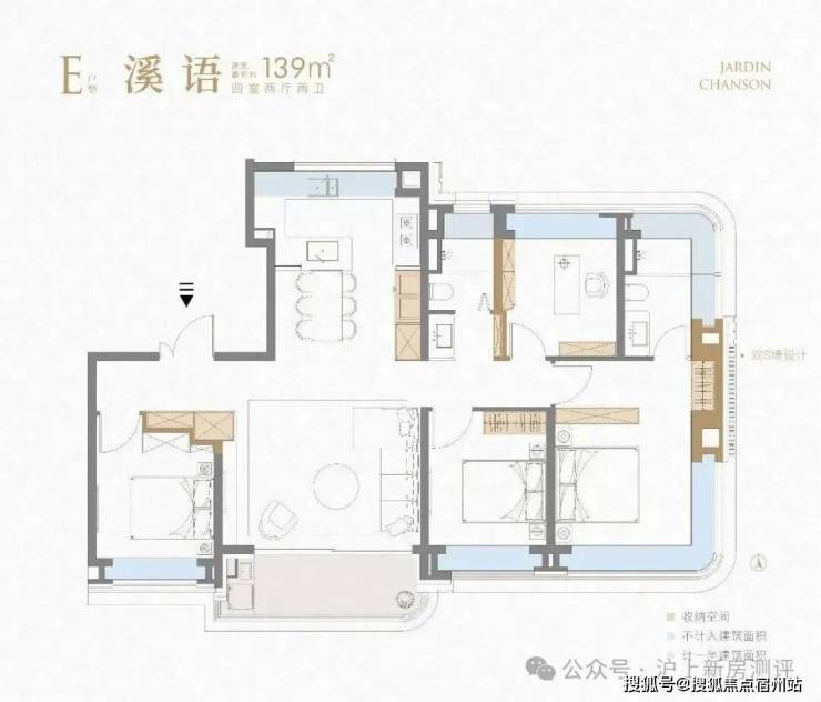 项目建面约139㎡4房则是集大成的终极改善户型。
