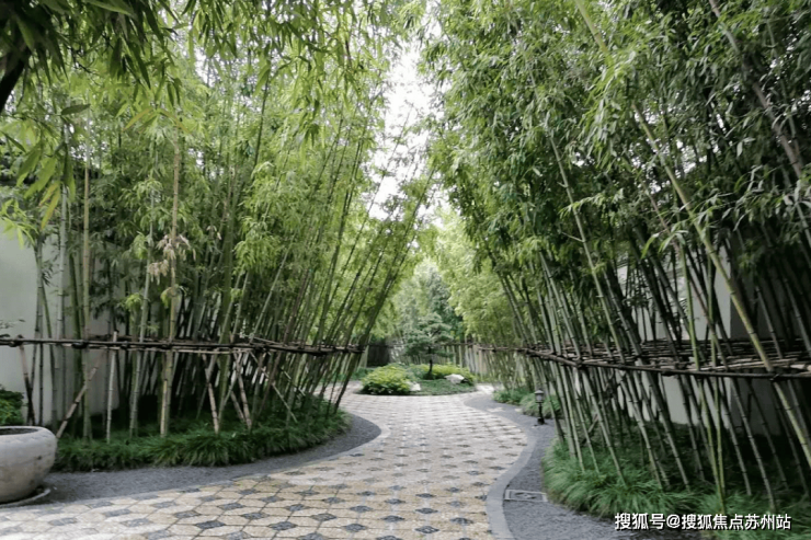 走在小区中,扑面袭来的第一感觉就是如同在逛园林一般。满眼绿意,且处处有景。水池、亭台、竹林、鹅卵铺地等园林景观构建了眼前的一切。
