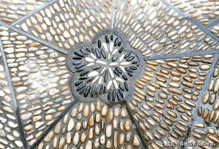 其卵石粒全部都经过精挑细选,由“香山帮”匠人遵循古法拼花雕鉴、蹲地铺设而成,据说因其极为耗时,“平均一天只能呈现1㎡”。