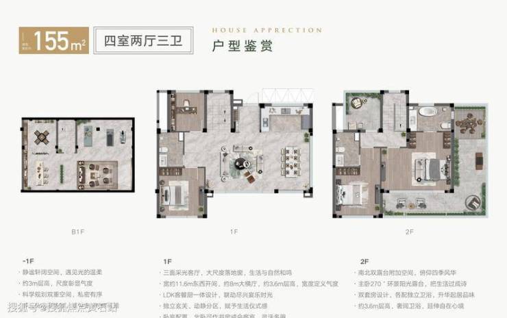 与此同时,居然做到了约3.6米的阔绰层高+270°转角露台+高度约3-5.4米、大尺度采光井的地下室。将视野景观进行全角度地拉伸的同时,更展示出真·别墅产品独有的气场。