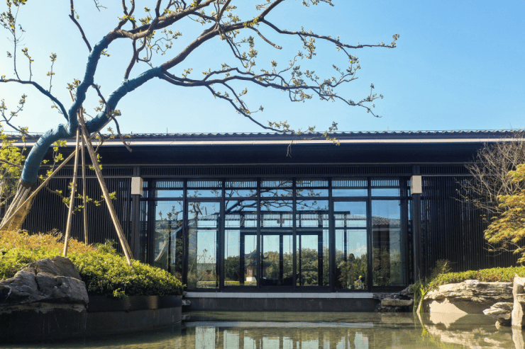 园区整体在布局上采用了街巷式的组团设计,再现“五街八巷九坊”古典风貌,而造景上,则内承中国历史名园营造法式与海派艺术神韵,成就“两轴九园”,绘就一派清雅国风。