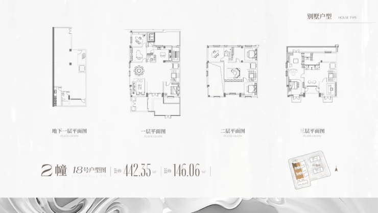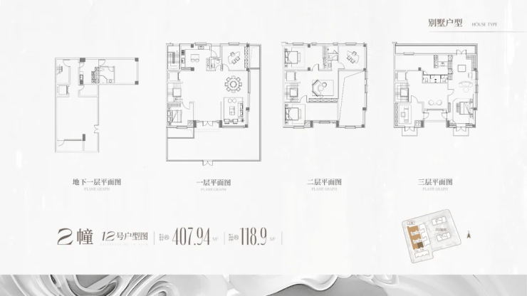 在售楼栋:12#·407.94㎡、15#·445.87㎡、17#·407.94㎡、18#·442.35㎡(双拼别墅)