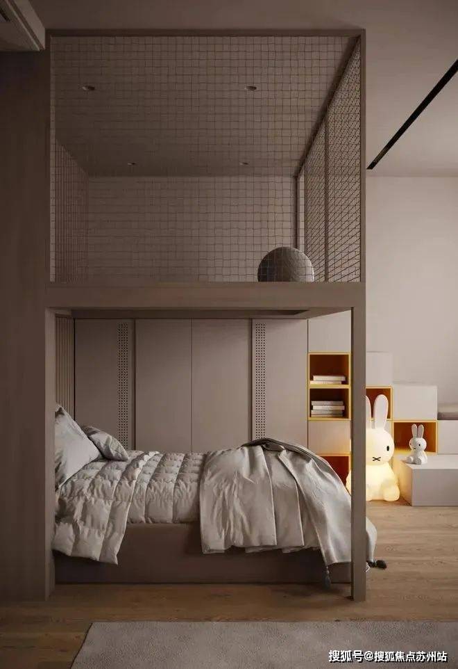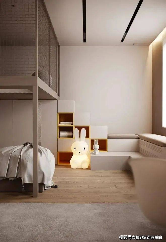 儿童房的设计充满童趣,并富有一定的灵动性,活动区域和休息区的结合可以满足小孩不同年龄段的使用需求。