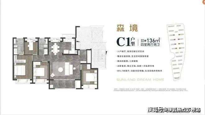 对于功能性和收纳有更高要求的家庭,则可以根据预算选择建面约136平4房户型。