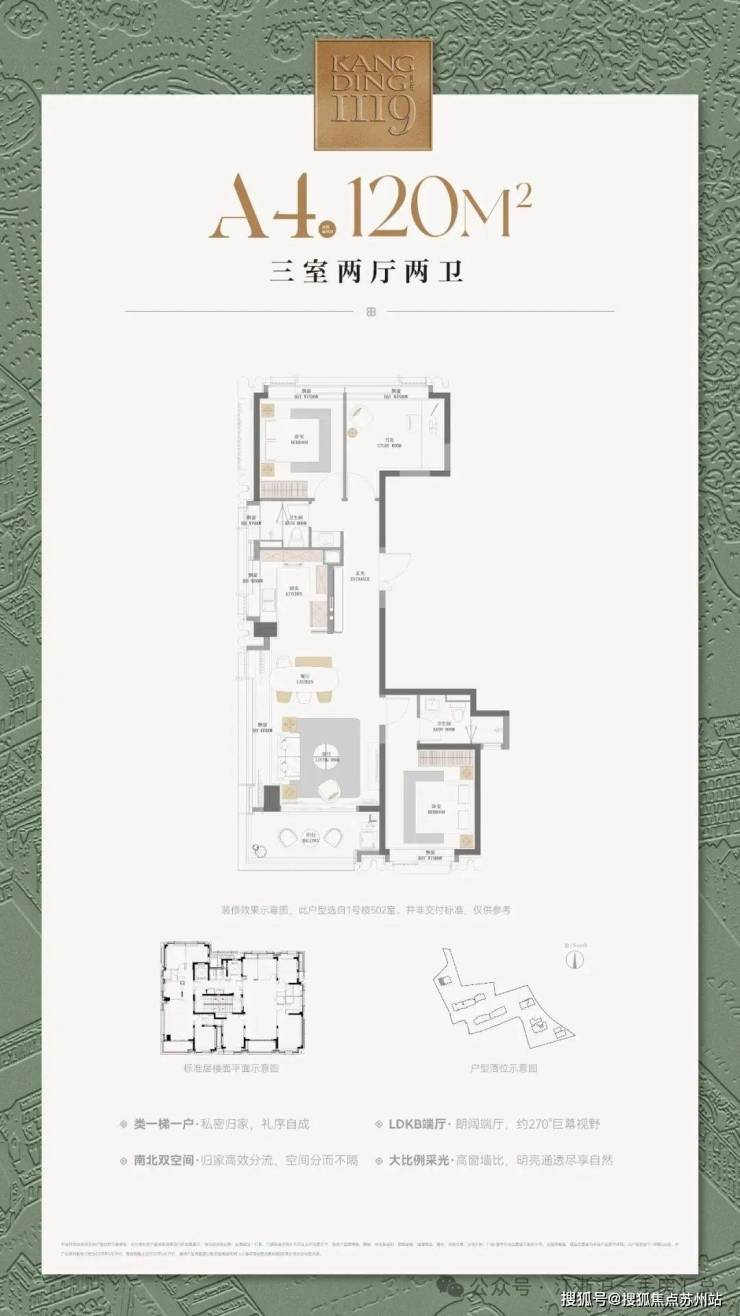 康定壹拾玖本次将推出建面约120㎡与193㎡两个户型,同时在现场实体楼栋打造了2个120㎡和1个193㎡样板间。