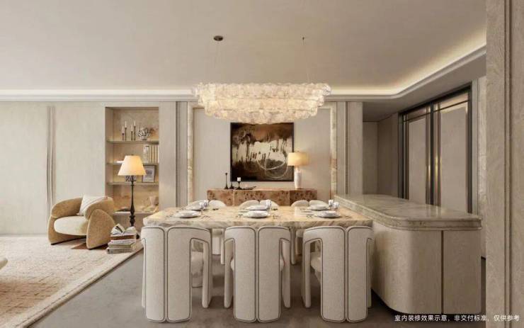 一梯一户的私密格局、3 米进深玄关的归家仪式,搭配近 11 米景观落地窗与超 60㎡滨江天际会客厅,构成 IMAX 环幕生活剧场,满足名流沙龙、家族聚会等多重仪式感场景。从双南向套房配置,到 5.1 米宽西南向观景阳台,再到隐形智慧收纳系统与柔性焕肤美学,空间在功能与尺度上实现巅峰平衡,让奢侈深藏于便捷与秩序,真正实现 “收藏世界,亦定义自我” 的居住哲学。