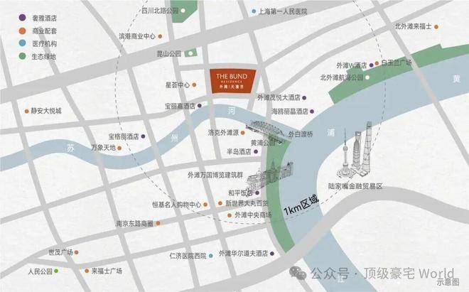 1、与外滩和陆家嘴错位联动,居职相融、孵化创新思维的新时代顶级中央活动区;