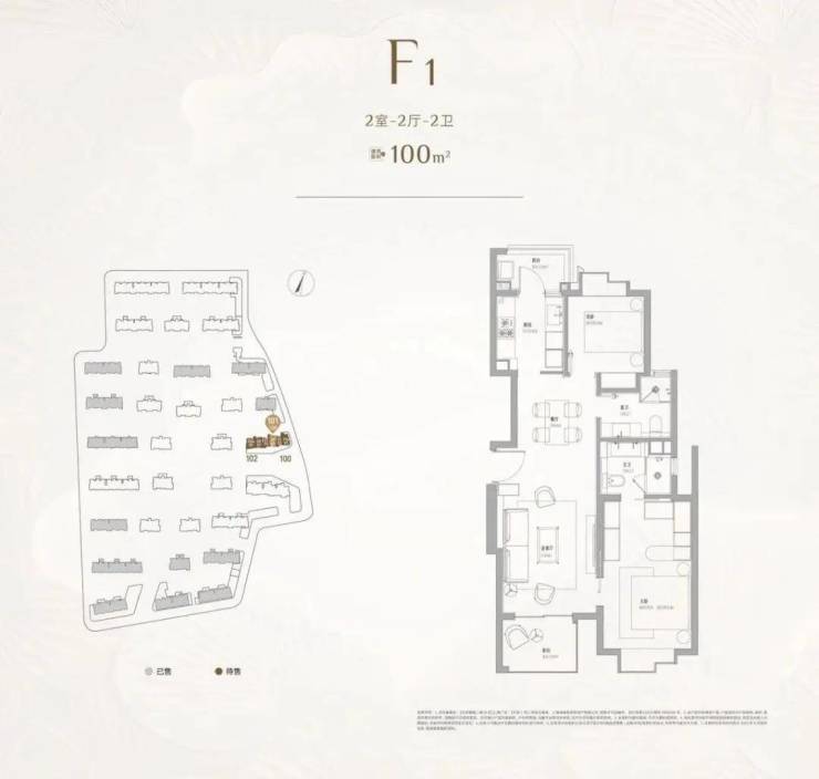建面约100㎡2房2卫,这是整个天安1号B区唯一一个总价在千万以内的产品,上车首选.