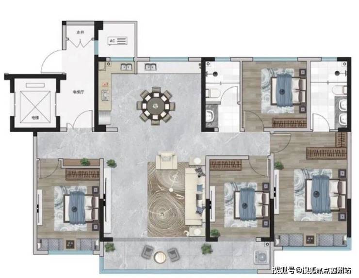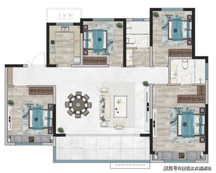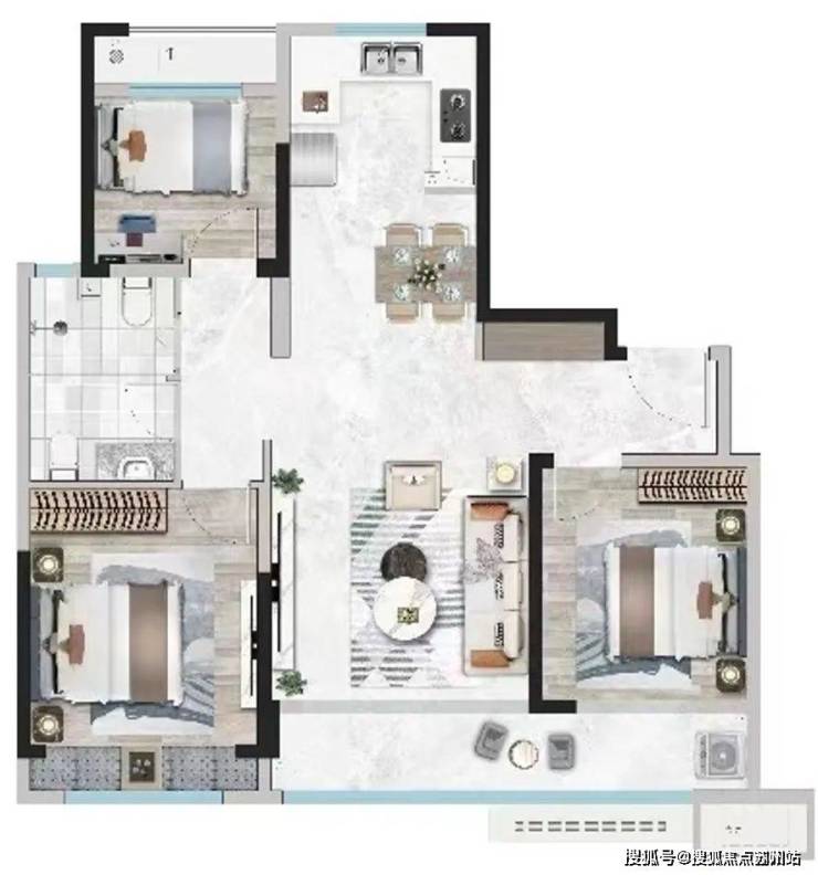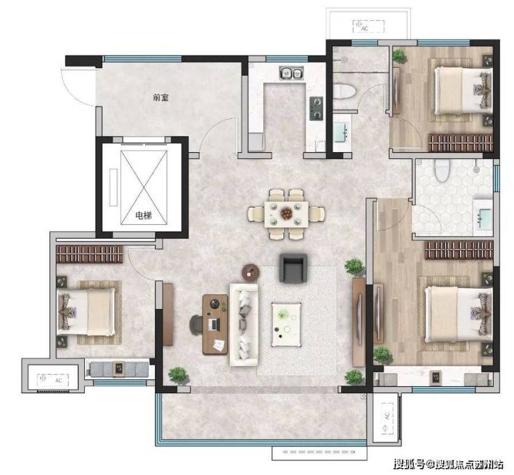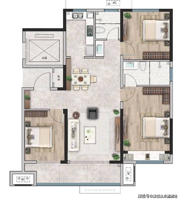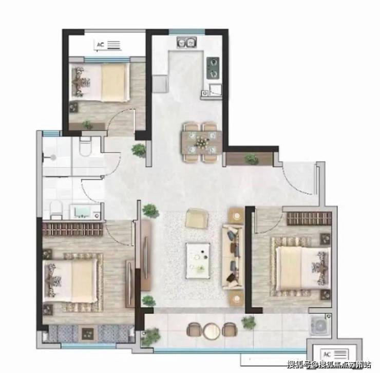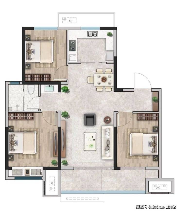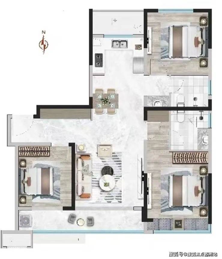 苏州相城#紫珺兰园营销中心热线:400-8123-664相比于单纯三叶草户型,增加了宽厅的设计,增强视觉空间感的同时丰富了日常起居的活动空间