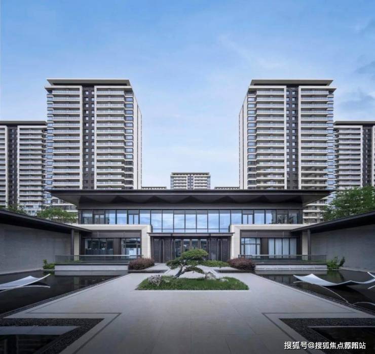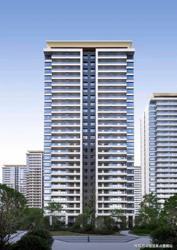 苏州相城#紫珺兰园营销中心热线:400-8123-664-为此,高层的立面设计采用三段式横向线条以彰显利落明朗的现代风格,屋面的造型飘板以独特的斜切面构筑了精致的城市天际线,同时在门头、基座、窗间墙等细节中融入了传统的中式设计元素,继而营造出细腻的现代中式立面风格。