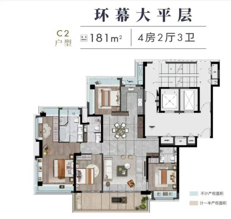 产品设计:精装配置国际一线品牌,户型涵盖125㎡至180㎡大平层,部分带横厅设计