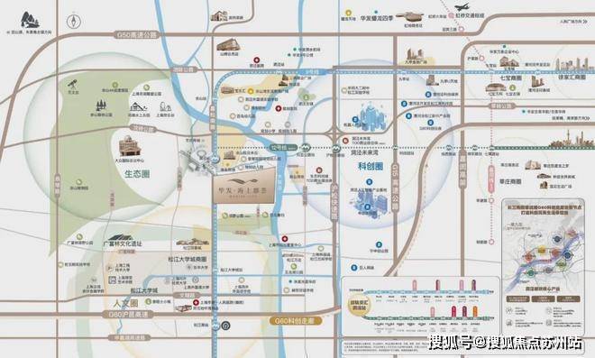 华发股份首入松江,携崭新“优+产品体系5.0”,为洞泾、乃至为松江带来目前区域内综合高品质作品。结合上海生态环境保护“十四五“规划,站位国际领先的可持续性项目规划,华发·海上都荟结合自身的独特聚合优势,在传统TOD规划之上,叠加不可复制的土地生态资源,向东链接G60科创走廊“以镇命名为区块”洞泾人工智能产业基地;向南直达亚洲大学城之一——松江大学城;北侧紧连上海陆面自然山林资源——佘山国家旅游度假区。板块高度贴合上海2035与松江2035发展关键节点,将区域打造成为“科创+文教+生态”交汇的核心新城模式,划立一个崭新的城市单元示范。