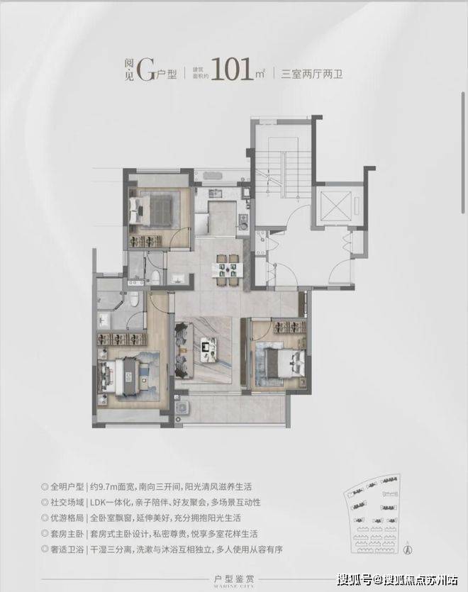 全明户型| 约9.7m面宽,南向三开间,阳光清风滋养生活