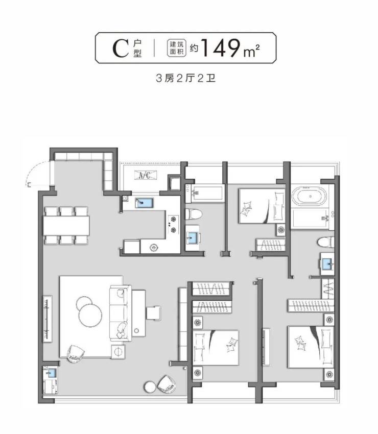 在售户型:105㎡、138㎡、149m²、151㎡