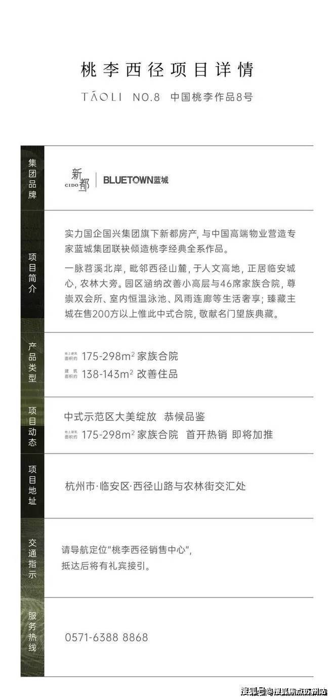 从第一眼的喜欢,到越了解越耐看,桃李西径中式合院长在很多人的审美上,它由临安实力国企国兴集团旗下的新都房产,携手蓝城集团,汲取桃李春售楼处电话☎:400-8787-554【售楼热线】✔✔✔风中式合院为灵感,并把它放在了临安城心,以超越自我、超越周期的作品态度经验,打造更经典、也更纯正的46席中式合院,是卖一席少一席的存在。
